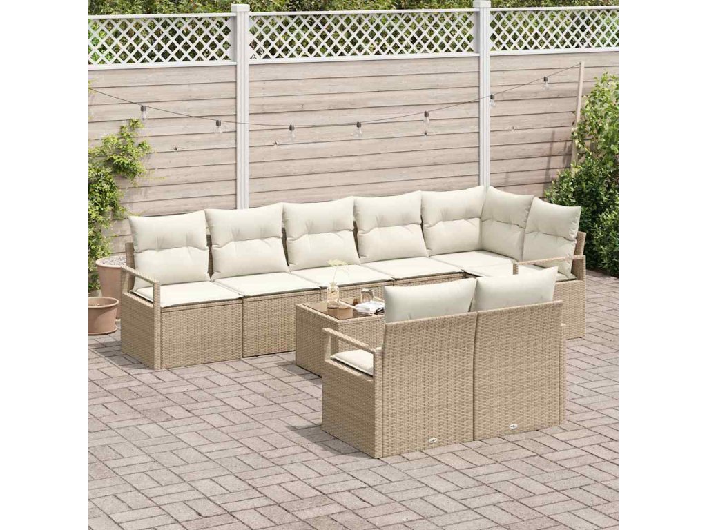 Set pohovek s polštářem 9 pcs Béžová polyratan 3346441