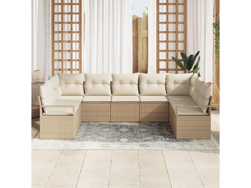 Set pohovek s polštářem 9 pcs Béžová polyratan 3346541
