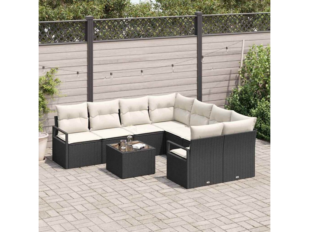Set pohovek s polštářem 9 pcs Černá a krémová polyratan 3346317