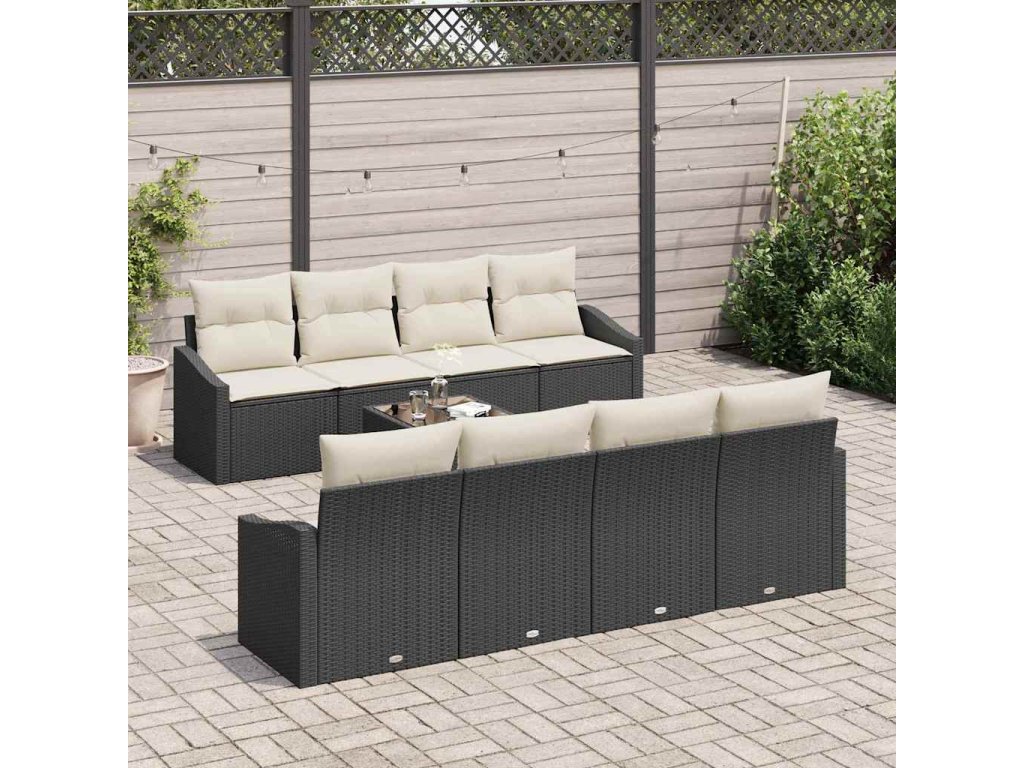 Set pohovek s polštářem 9 pcs Černá a krémová polyratan 3346647
