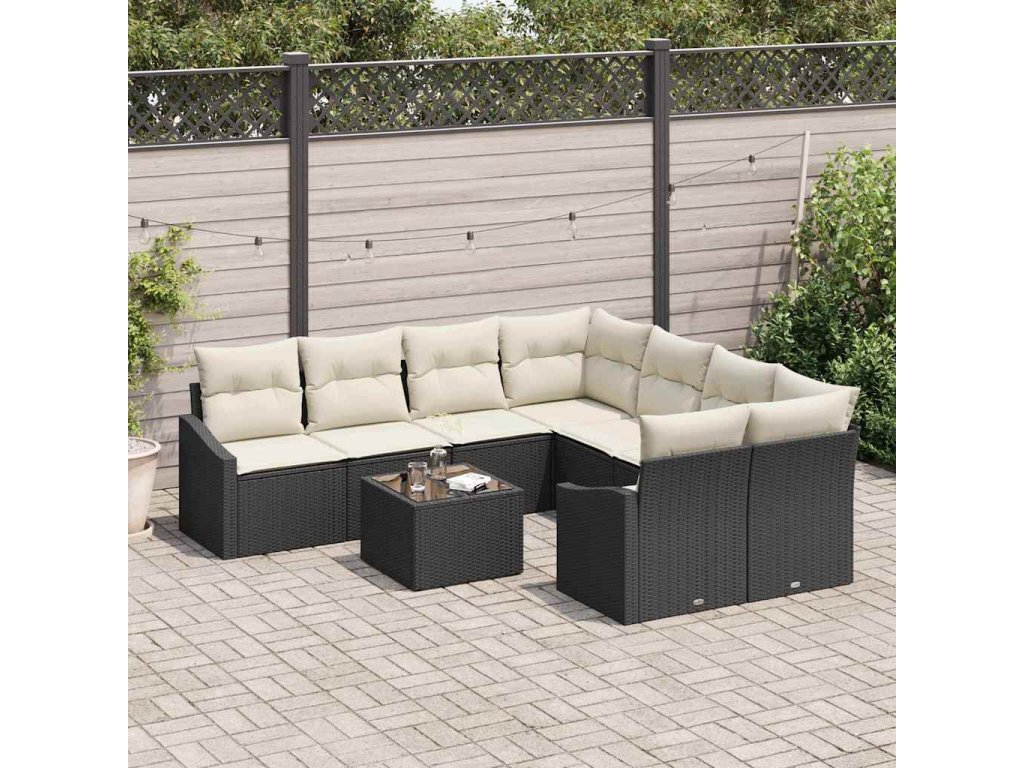 Set pohovek s polštářem 9 pcs Černá a krémová polyratan 3346657
