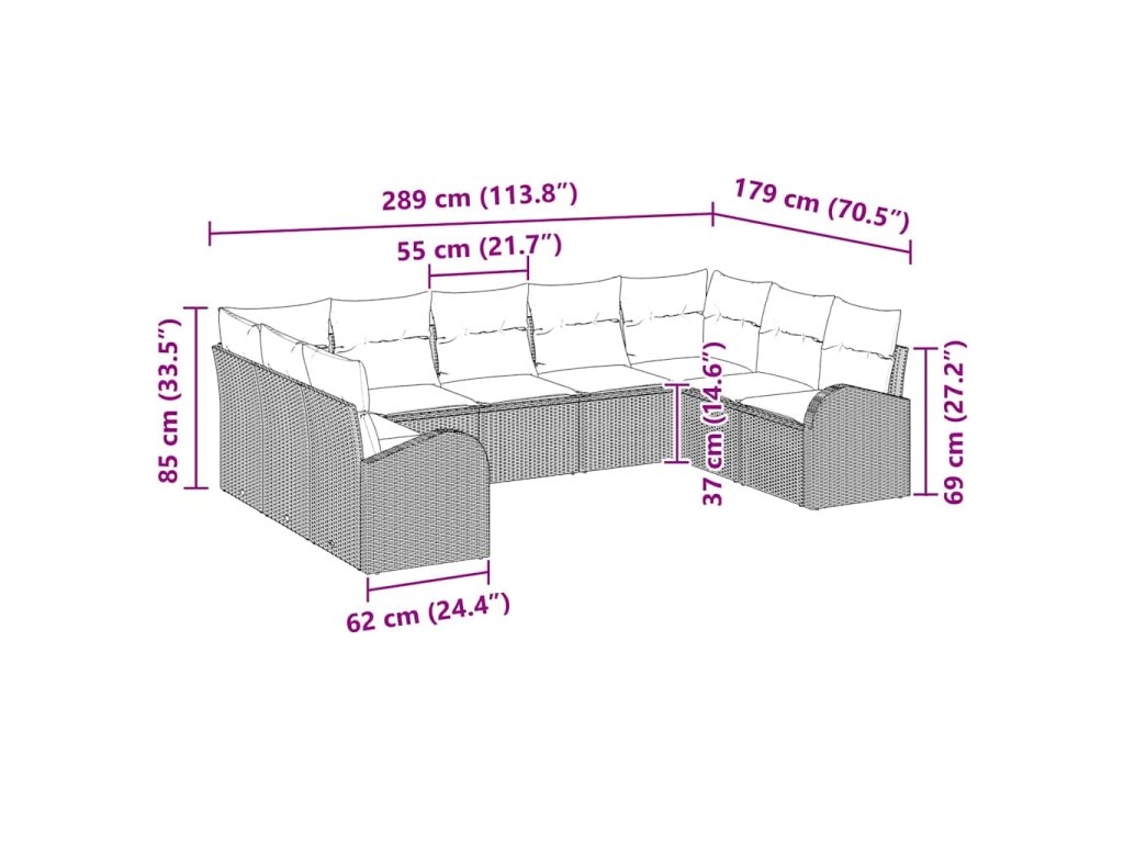 Set pohovek s polštářem 9 pcs Černá Poly Ratan 3346197