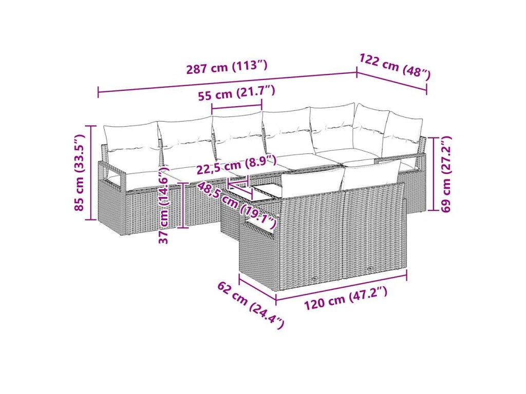 - Materiály: Tenhle zahradní pohovkový set, vyrobený z kvalitního poly ratanu, je odolný vůči UV záření a různým povětrnostním podmínkám, což zajišťuje dlouhá léta používání. Jeho tkaná textura přispívá k modernímu stylu, a přitom zajišťuje pohodlí, takže je to skvělá volba pro každou zahradu nebo terasu.