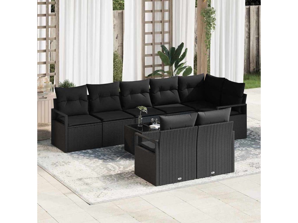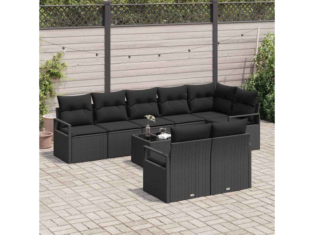 Set pohovek s polštářem 9 pcs Černá polyratan 3346443