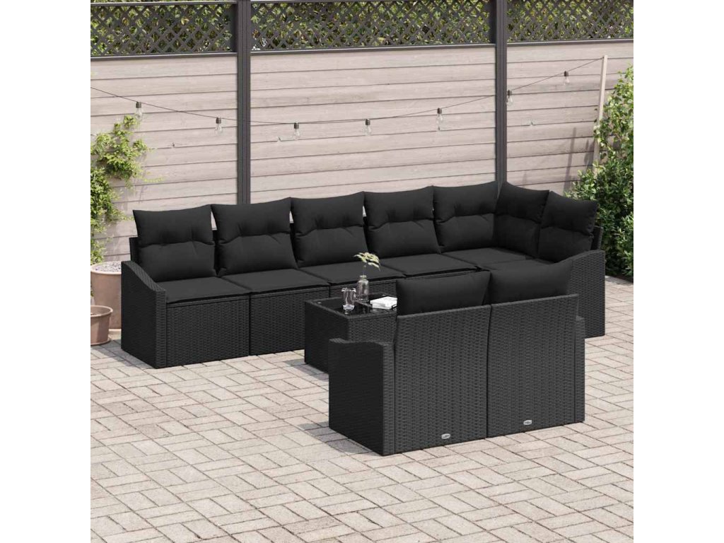 Set pohovek s polštářem 9 pcs Černá polyratan 3346783