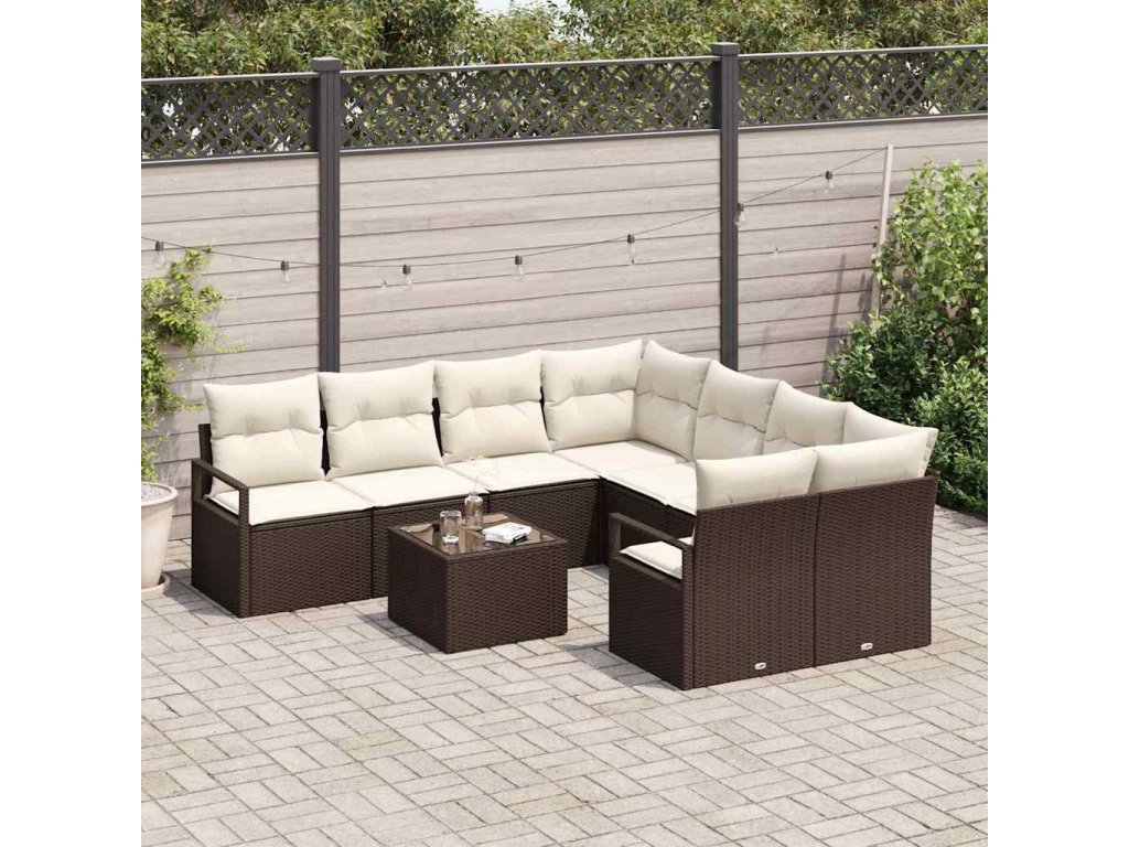 Set pohovek s polštářem 9 pcs Hnědá a krémová polyratan 3346318