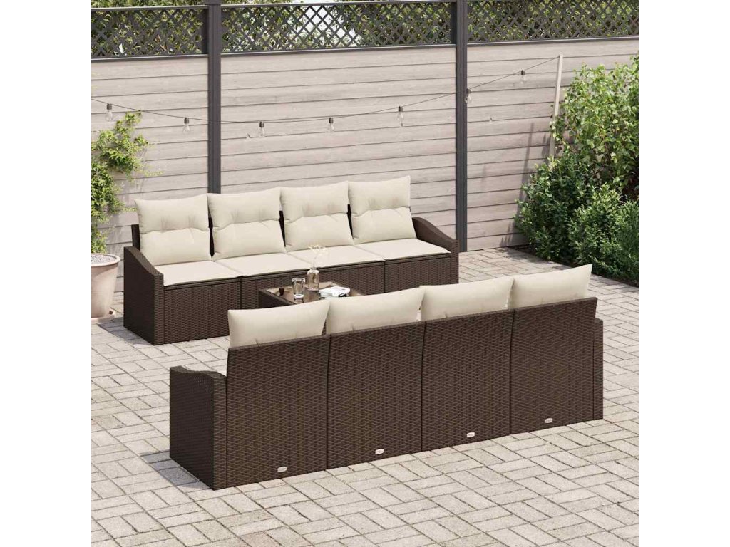 Set pohovek s polštářem 9 pcs Hnědá a krémová polyratan 3346648