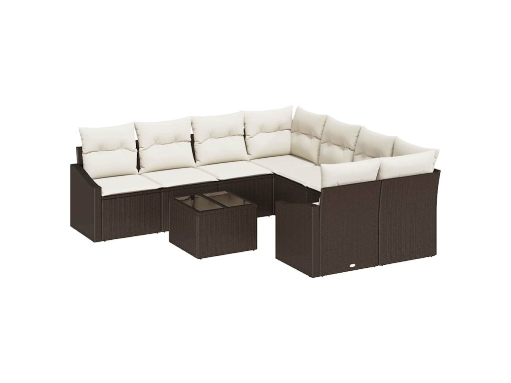 Set pohovek s polštářem 9 pcs Hnědá a krémová polyratan 3346658