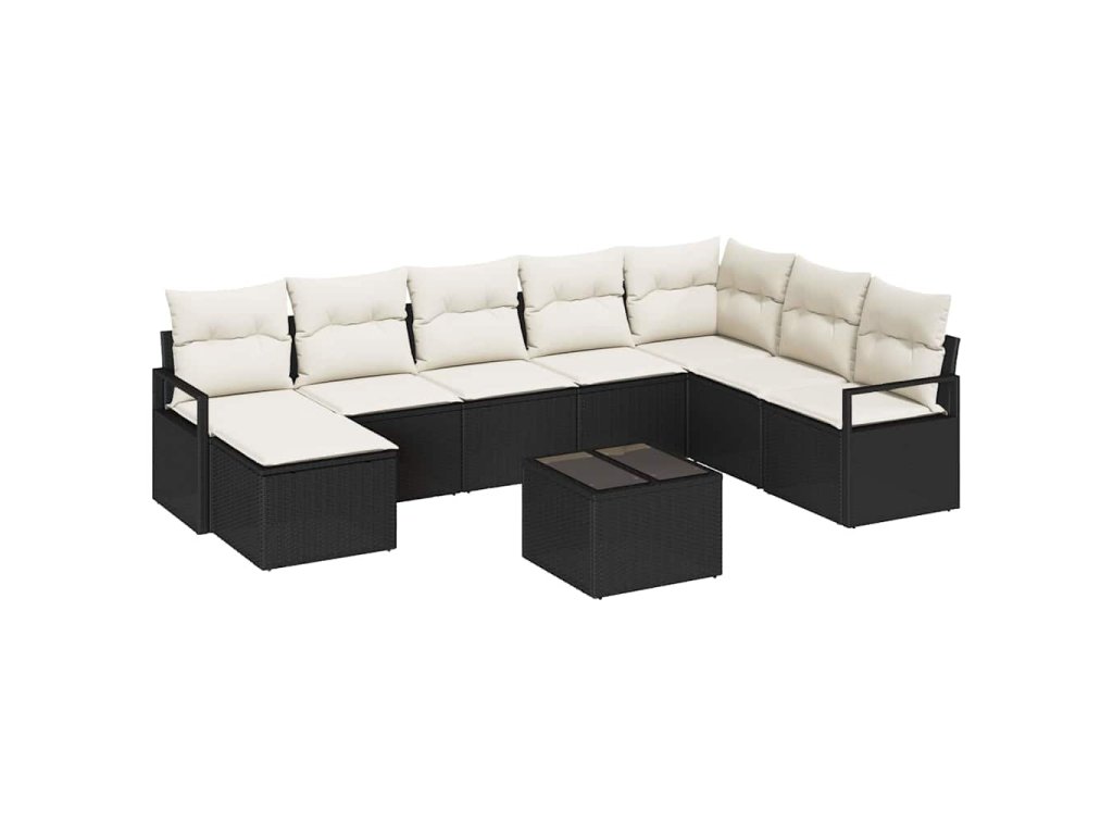 Set pohovek s polštářem 9 pcs Hnědá a krémová polyratan 3355176