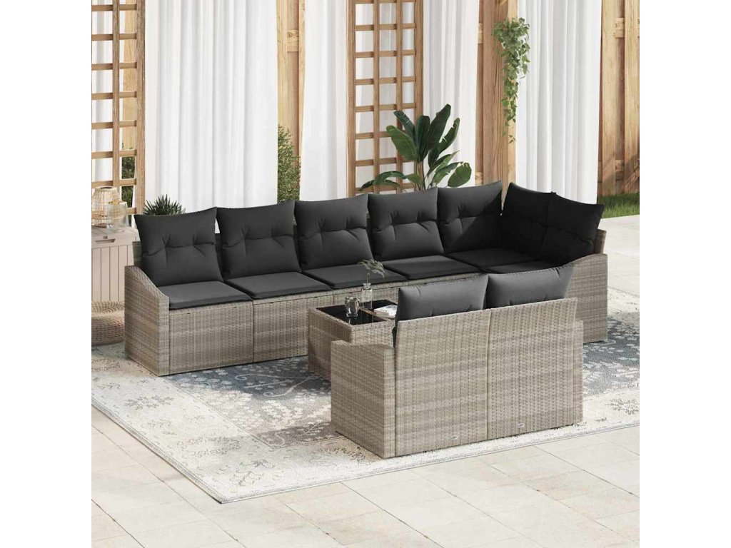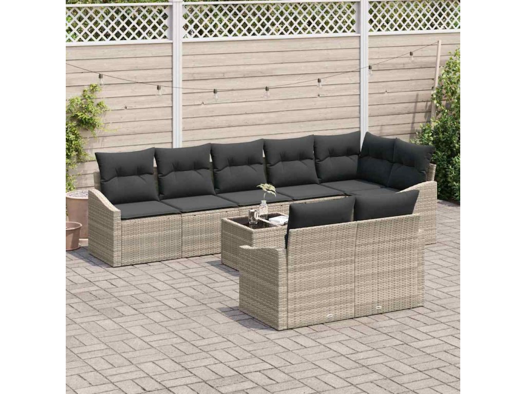 Set pohovek s polštářem 9 pcs Světle šedá polyratan 3346782