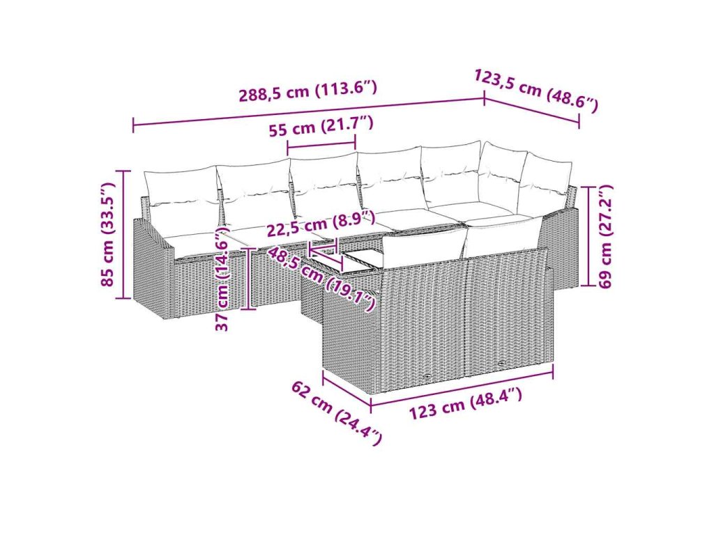 - Materiály: Vyrobeno z prémiového poly ratanu, co vydrží a je odolné vůči povětrnostním vlivům, tahleta pohovka se nebojí venkovních podmínek. Polyesterové polštáře dodávají komfort a dlouhotrvající vzhled, takže si užijete pohodlí a pěkný vzhled sezónu co sezónu.