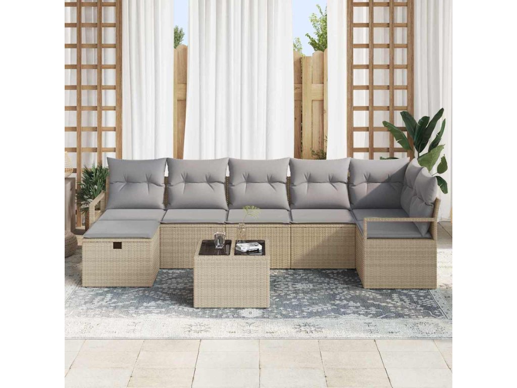 Set pohovek s polštářem Béžová a Světle šedá polyratan 3359209
