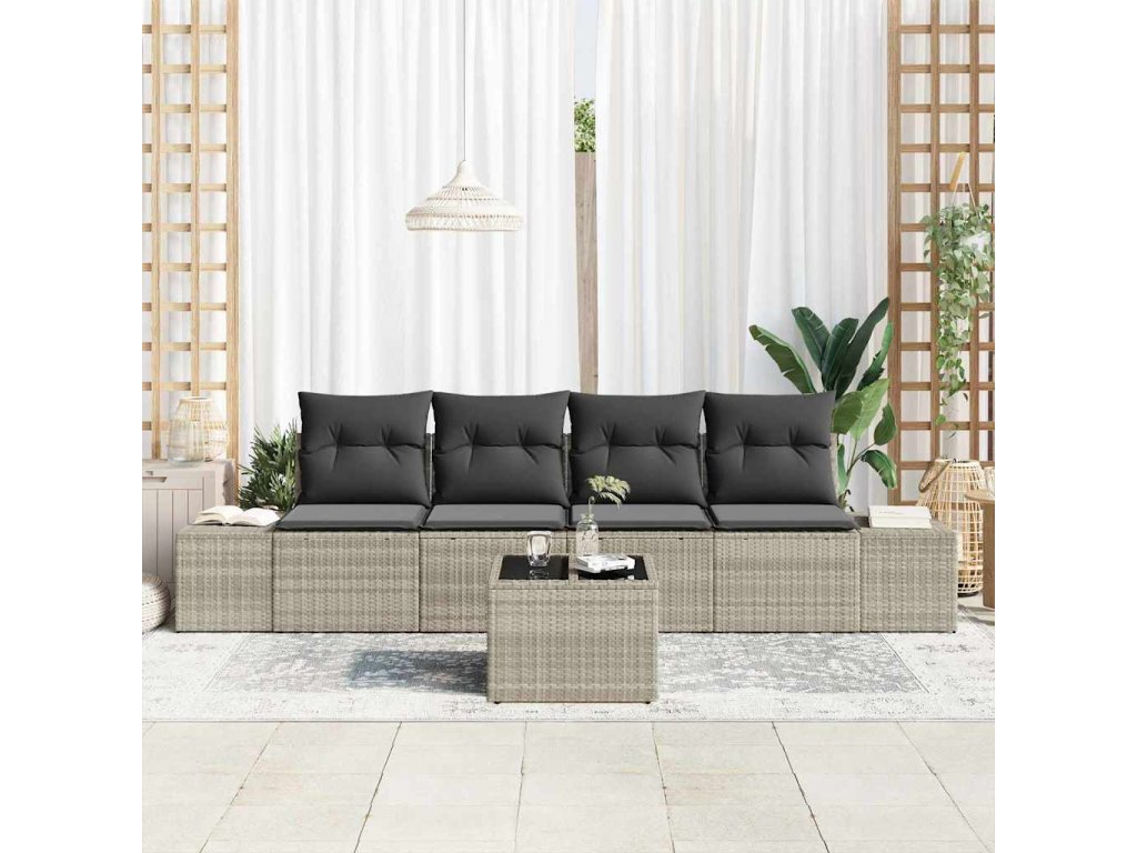 Set pohovek s polštářem s polštářem 5 pcs Světle šedá polyratan 3346932