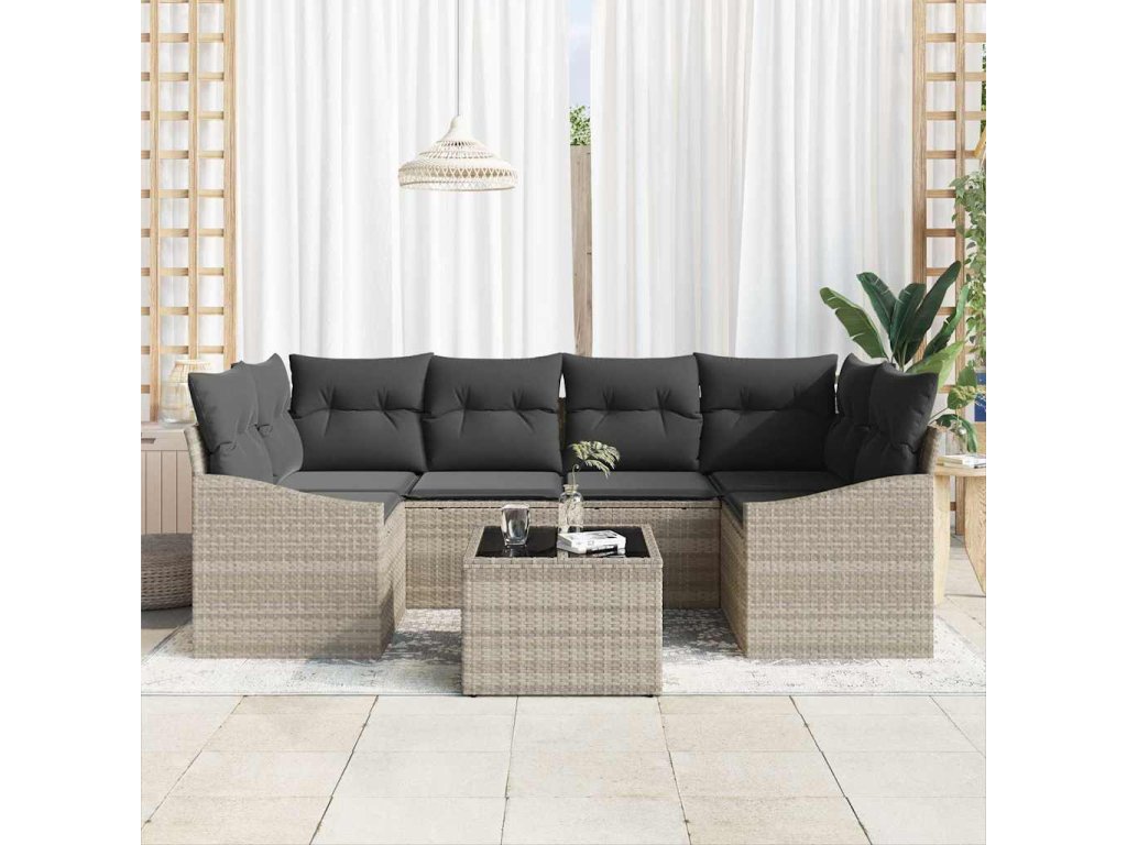 Set pohovek s polštářem s polštářem 7 pcs Světle šedá polyratan 3346622