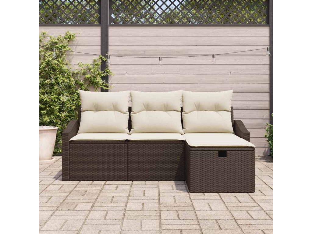 Set pohovek s polštářem s úložištěm 4 pcs Hnědá polyratan 3359247