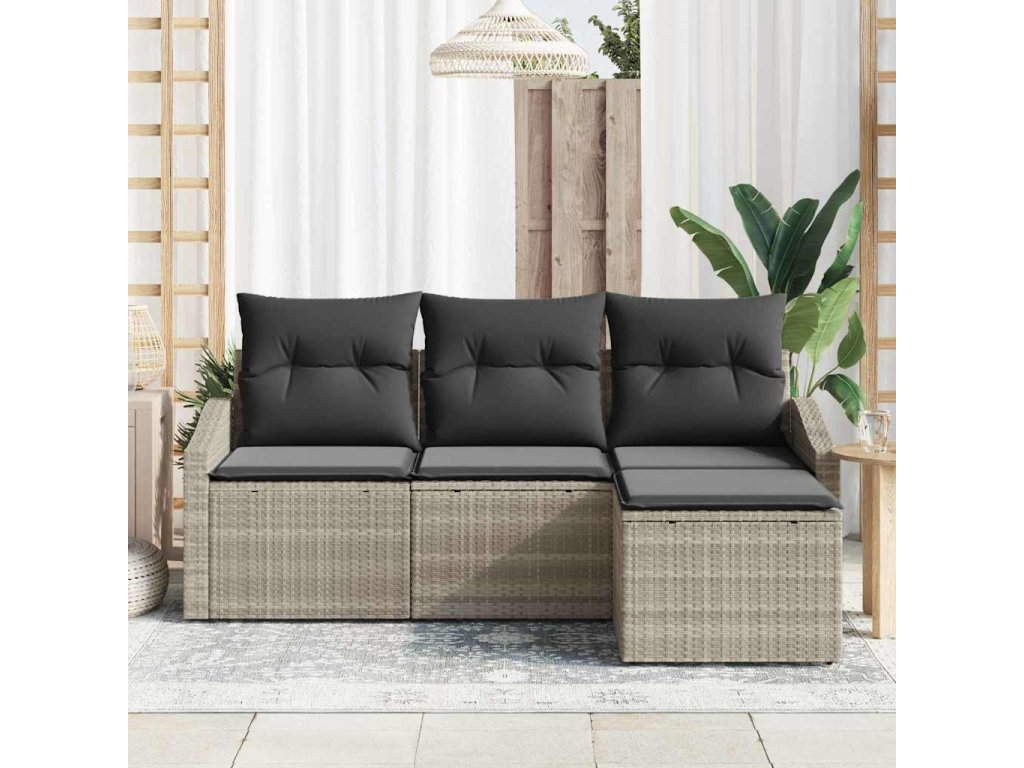 Set pohovek s polštářem s úložištěm 4 pcs Světle šedá polyratan 3355341