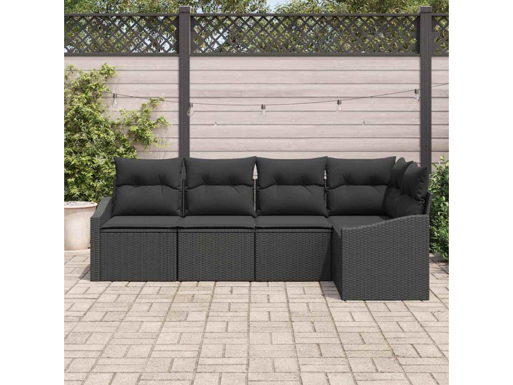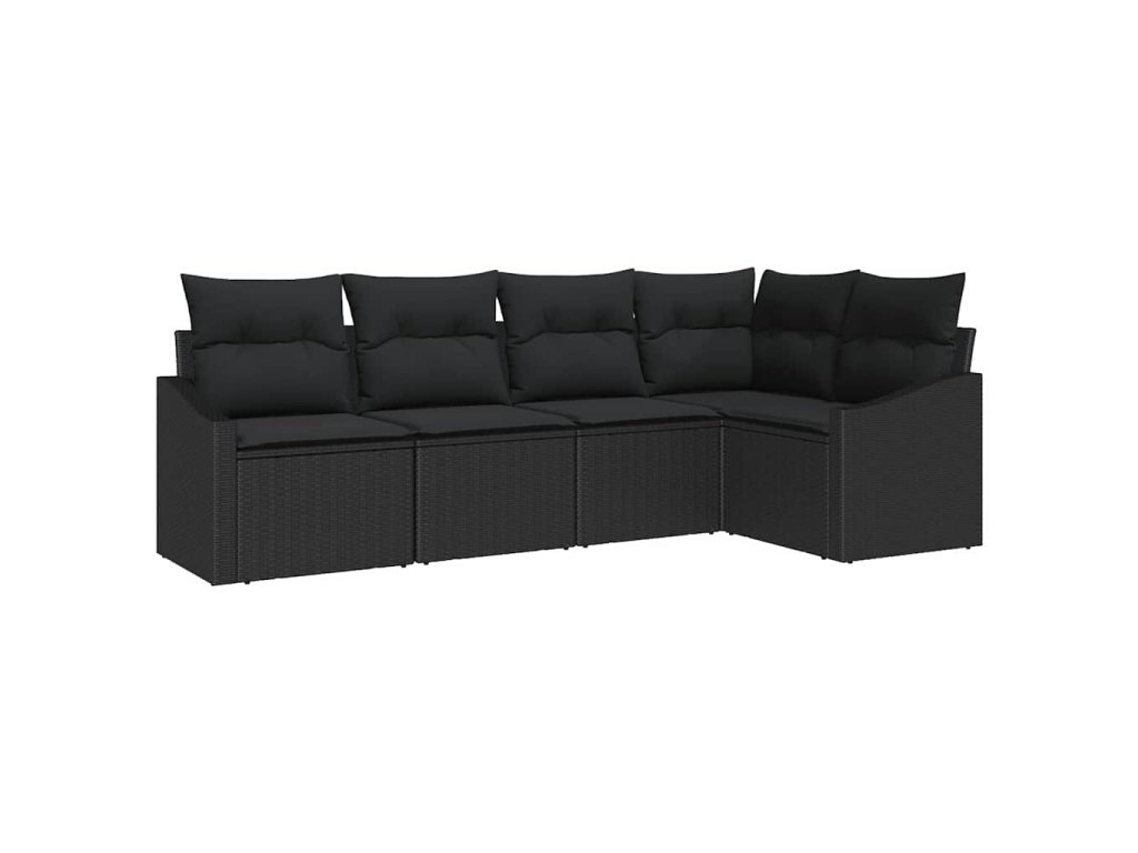 Set pohovek s polštářem s úložištěm 5 pcs Černá polyratan 3355392
