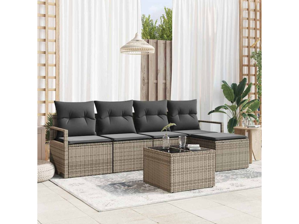 Set pohovek s polštářem s úložištěm 6 pcs Světle šedá polyratan 3355018