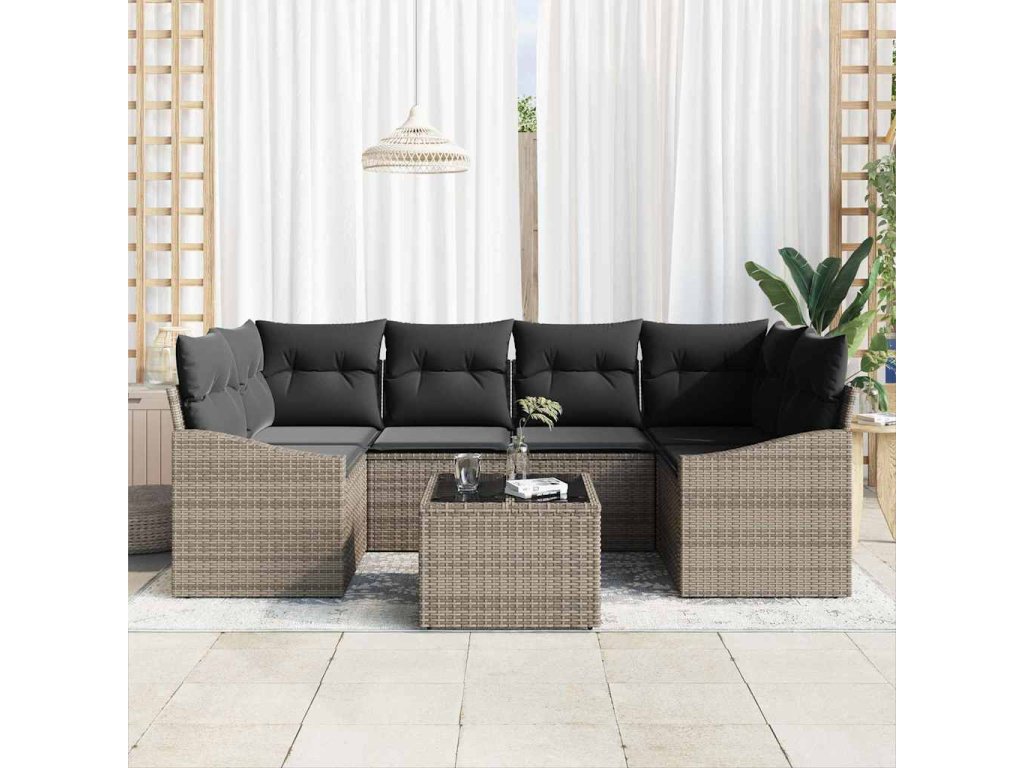 Set pohovek s polštářem s úložištěm 7 pcs Šedá polyratan 3355288