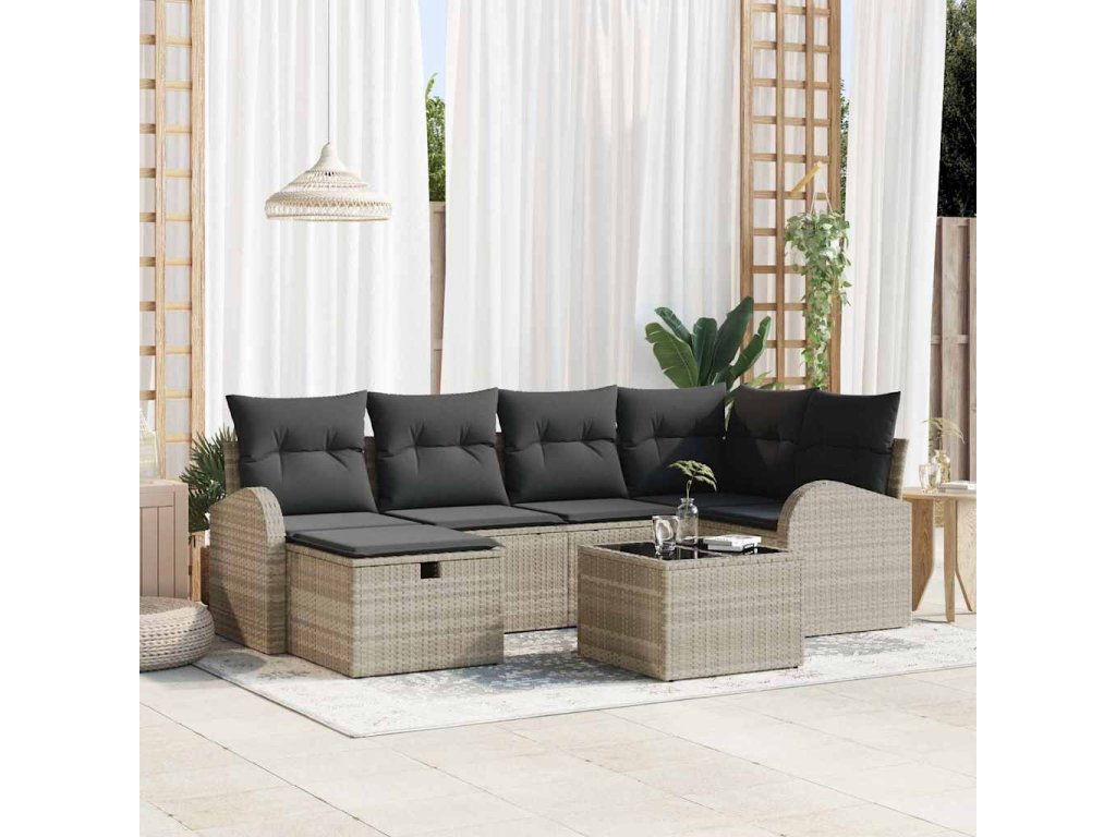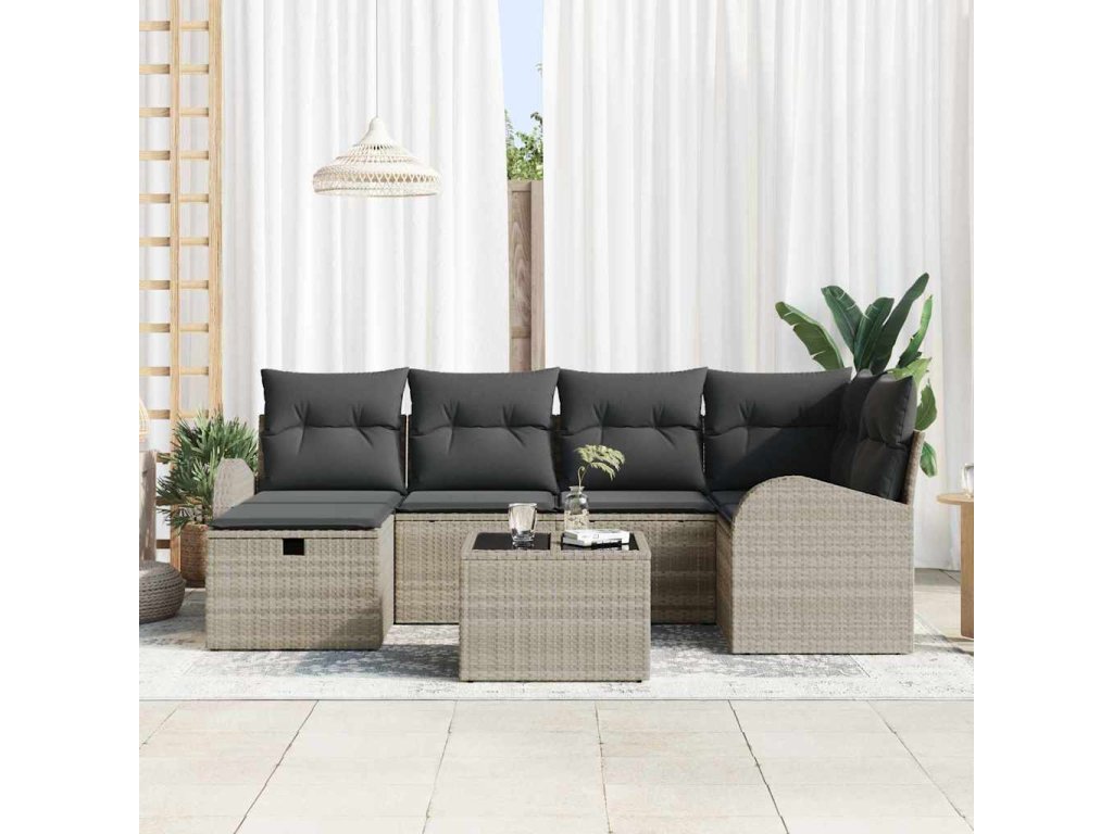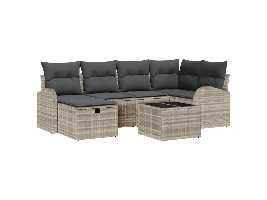 Set pohovek s polštářem s úložištěm 7 pcs Světle šedá polyratan 3359091