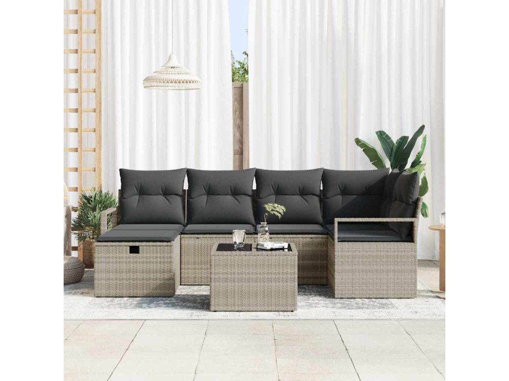 Set pohovek s polštářem s úložištěm 7 pcs Světle šedá polyratan 3359191
