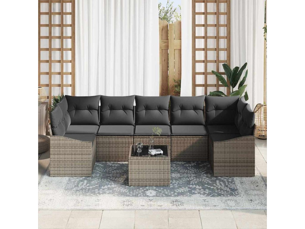Set pohovek s polštářem s úložištěm 8 pcs Šedá polyratan 3355308