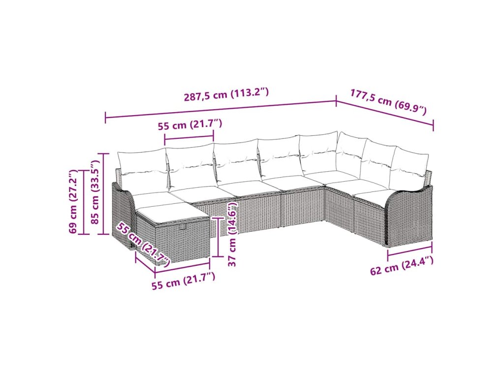 Set pohovek s polštářem s úložištěm 8 pcs Světle šedá polyratan 3359031