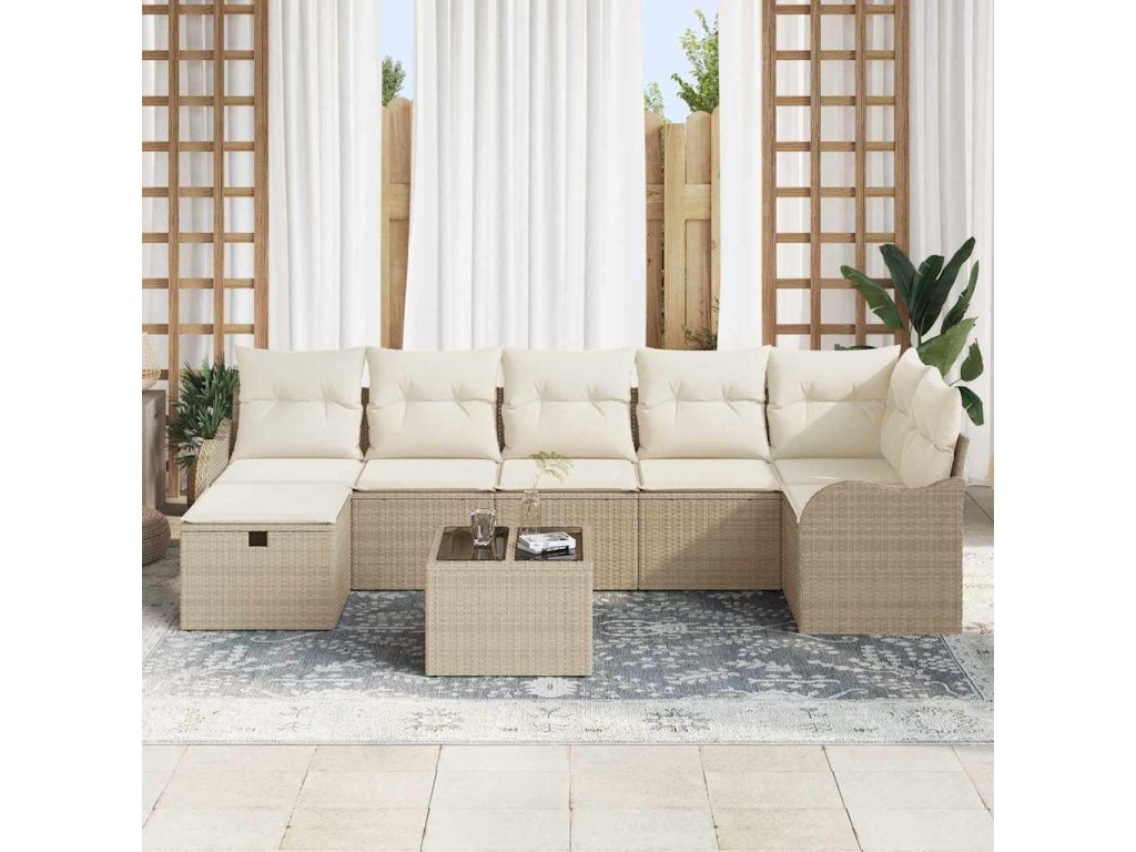 Set pohovek s polštářem s úložištěm Béžová a krémová polyratan 3359010