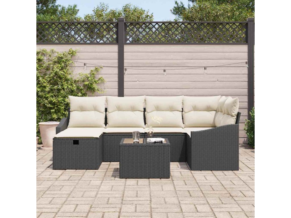 Set pohovek s polštářem s úložištěm Černá a krémová polyratan 3359286