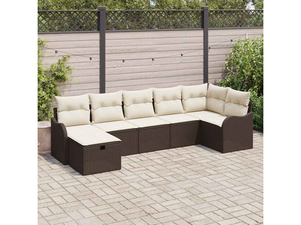 Set pohovek s polštářem s úložištěm Hnědá a krémová polyratan 3358997
