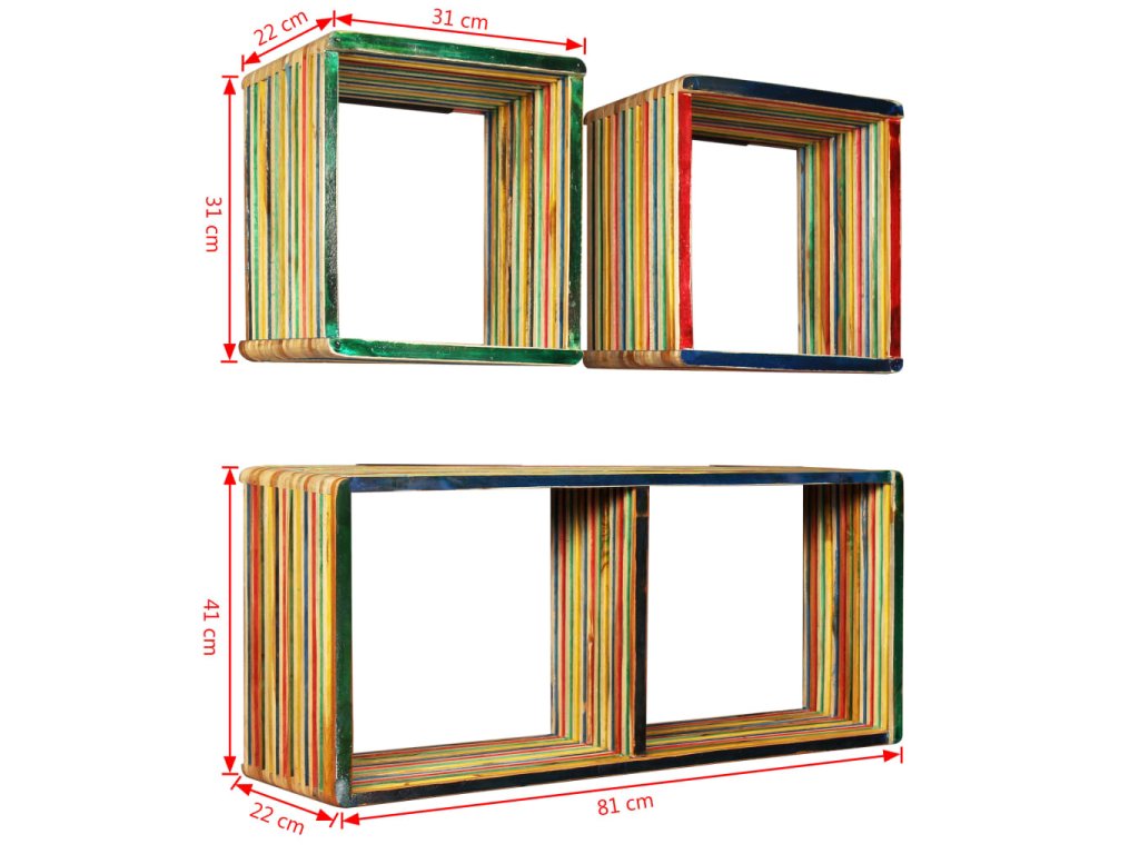 Set závěsných polic 3 ks, masivní recyklovaný teak, vícebarevné 245410