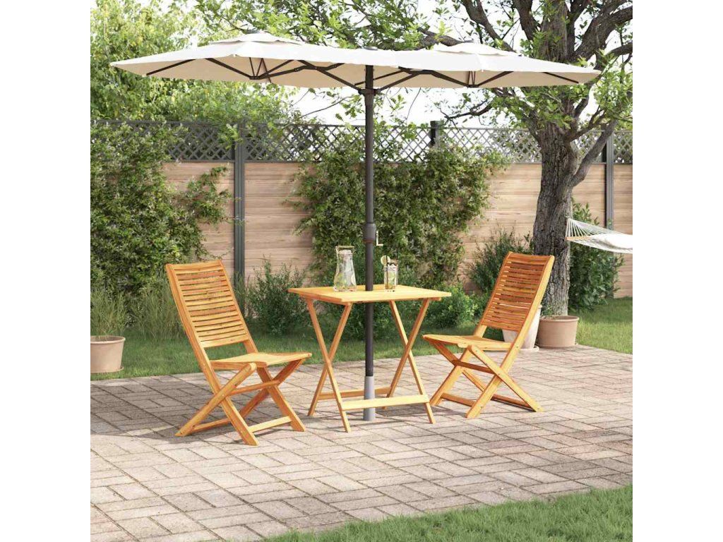 - Materiály: Tento bistro set z akáciového dřeva vyzařuje přirozené kouzlo a skvěle se hodí do moderních i rustikálních venkovních prostor. Akácie je odolná a vypadá skvěle, takže je to spolehlivá volba pro venkovní nábytek. Je odolná vůči vodě a hmyzu, takže vám set dlouho vydrží a zachová si krásu.