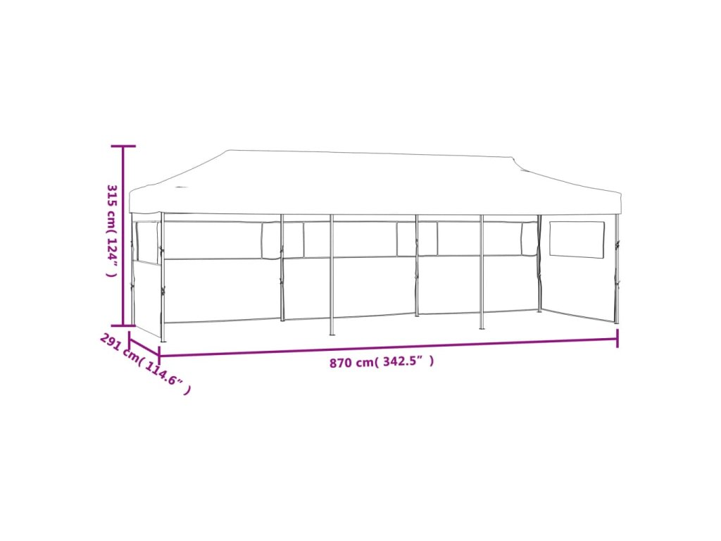 Venkovní stříška má střechu odolnou vůči UV záření a vodě, která je vyrobena z oxfordské tkaniny s PVC povlakem, a proto je ideální pro venkovní použití. Párty stan je navržen s 5 bočními stěnami s průhlednými okny pro zajištění plné ochrany. Rám je vyroben z nerezové oceli, díky čemuž je zahradní stan stabilní a odolný. Rozkládací párty stan je skládací pro snadné skladování a přepravu. Snadno se montuje.
