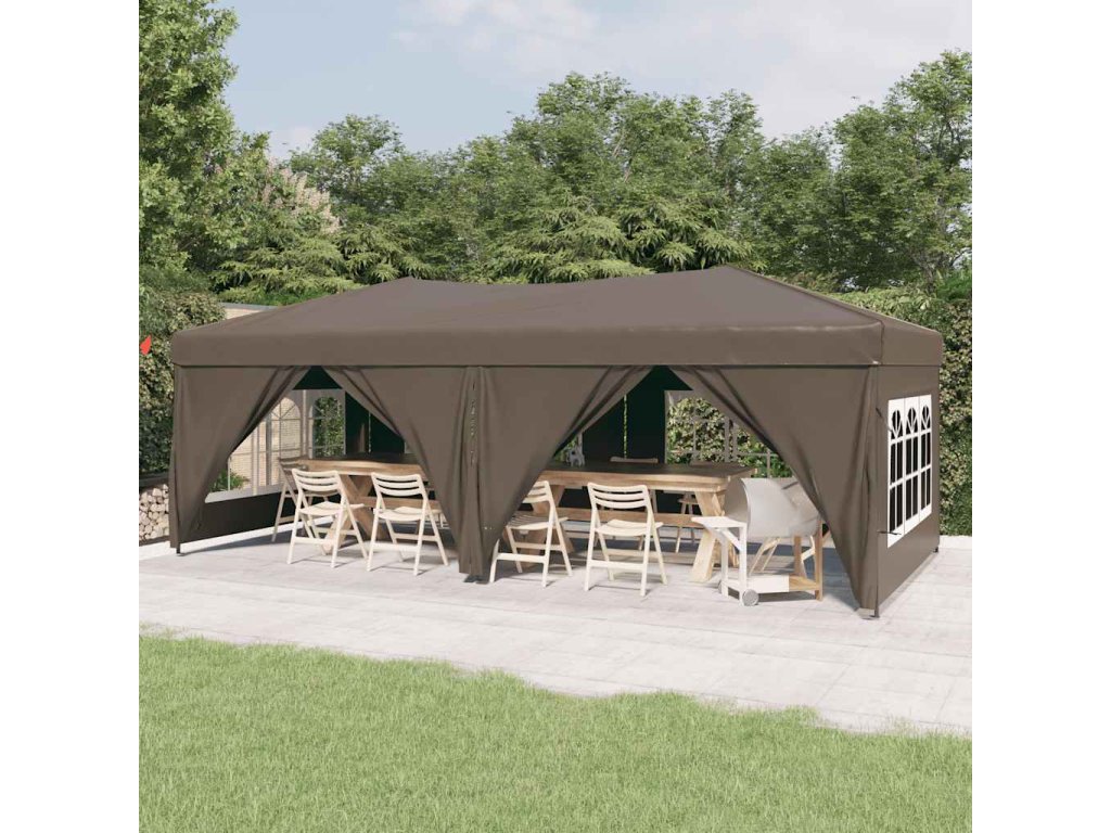 Skládací party stan s bočními stěnami taupe 3 x 6 m 93547