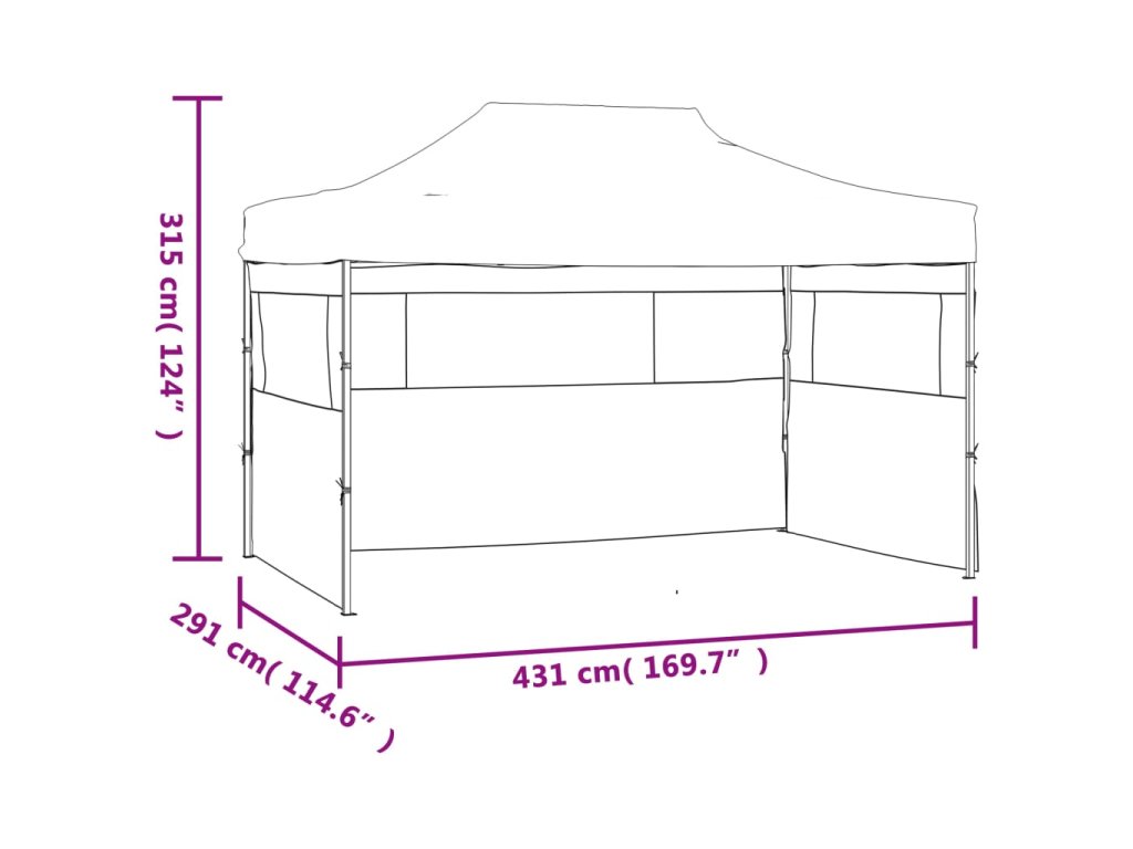 - Odolný materiál: Tento rozkládací párty stan je vyroben z odolné práškově lakované oceli a je extrémně odolný. Střešní krytina je vyrobena z oxfordské tkaniny s PVC povlakem a je 100% vodotěsná a odolná vůči UV záření.