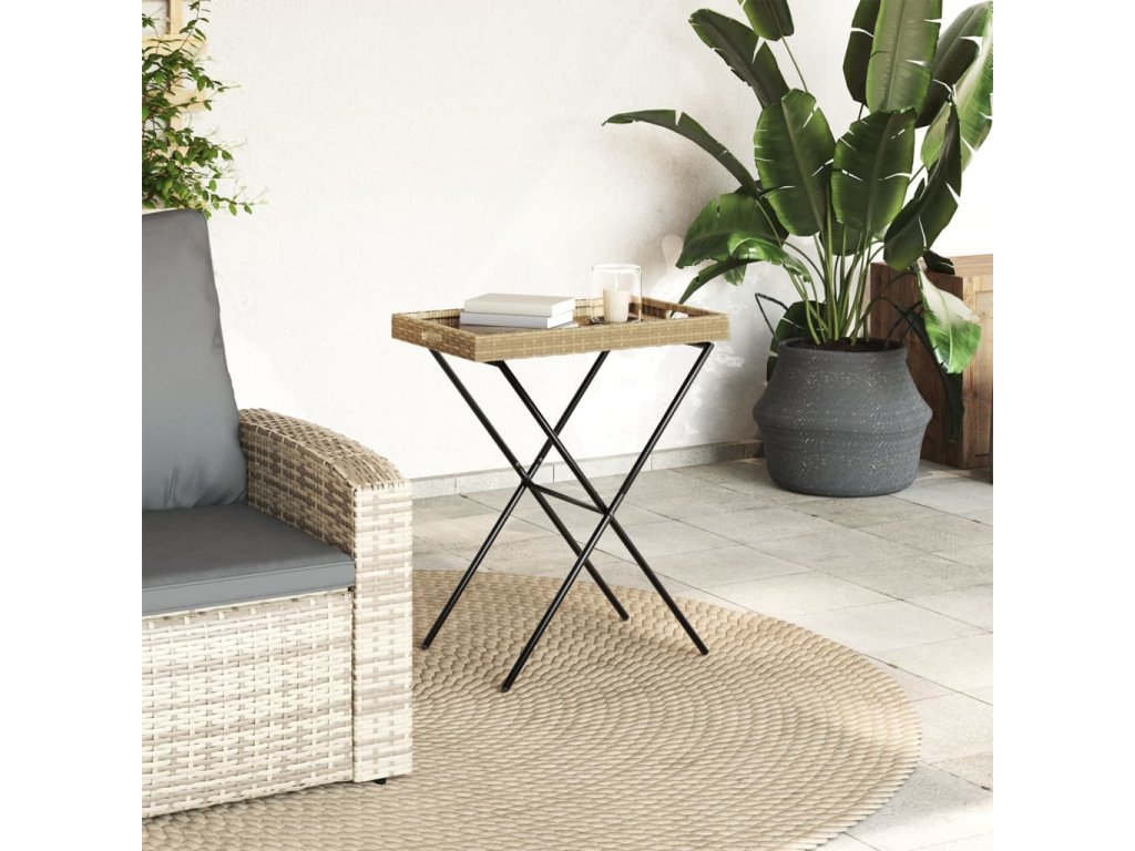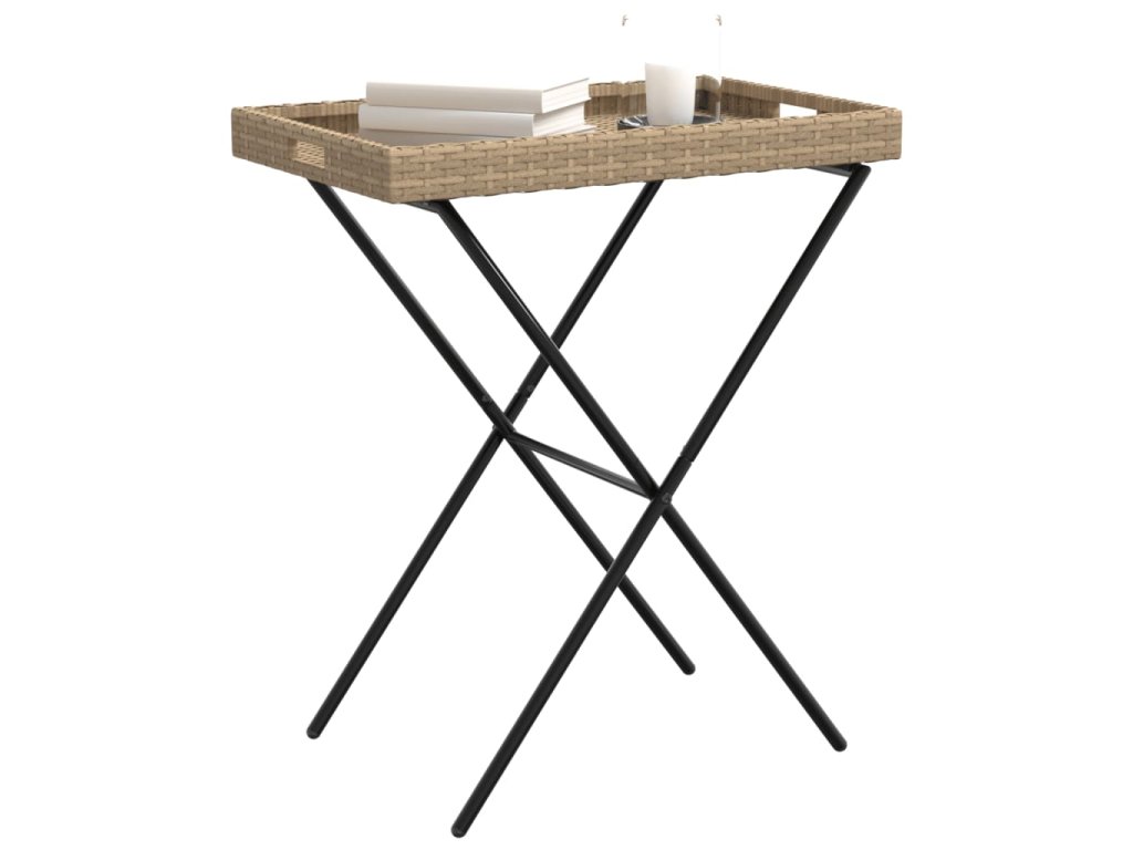 Skládací stůl s podnosem béžový 65 x 40 x 75 cm polyratan 365130