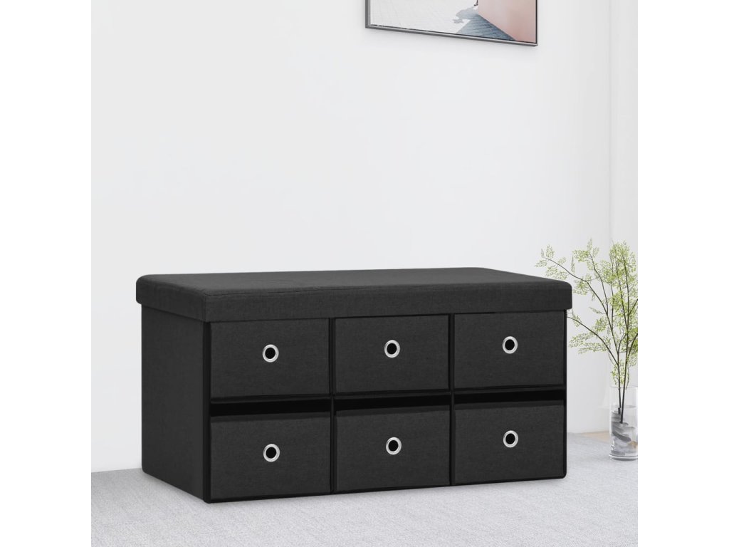 Skládací úložná lavice černá 76 x 38 x 38 cm umělý len 338811