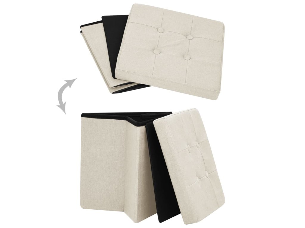 Úložná stolička je vyrobena z MDF a pevné tkaniny, která je odolná a stabilní. Pěnou polstrovaná stolička je pohodlná na sezení. Je vybavena odnímatelným sedákem, poskytne vám tedy dostatek úložného prostoru pro uložení mnoha různých předmětů, které tak budete mít pěkně po ruce. Navíc se dá složit, takže ušetříte místo, když ji zrovna nepoužíváte.