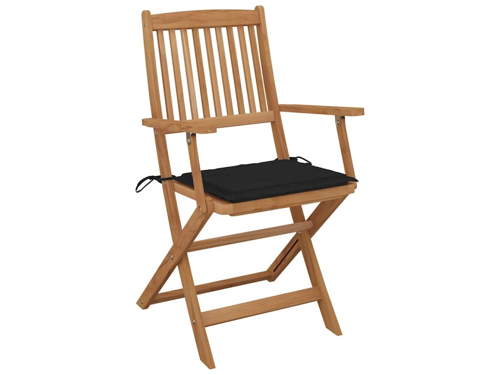 Jídelní židle jsou vyrobené z prémiového akáciového dřeva. Jedná se tropické tvrdé dřevo, které je odolné vůči povětrnostním vlivům a vydrží vám sloužit po mnoho let. Olejem napuštěný povrch se snadno čistí vlhkým hadříkem. Židle můžete složit, aby vám zbytečně nezabíraly místo, když je zrovna nepoužíváte. Pro větší pohodlí obdržíte spolu se židlemi také podušky. Každá z nich je opatřená 2 páry šňůrek, za které je lze pevně přivázat k židli.