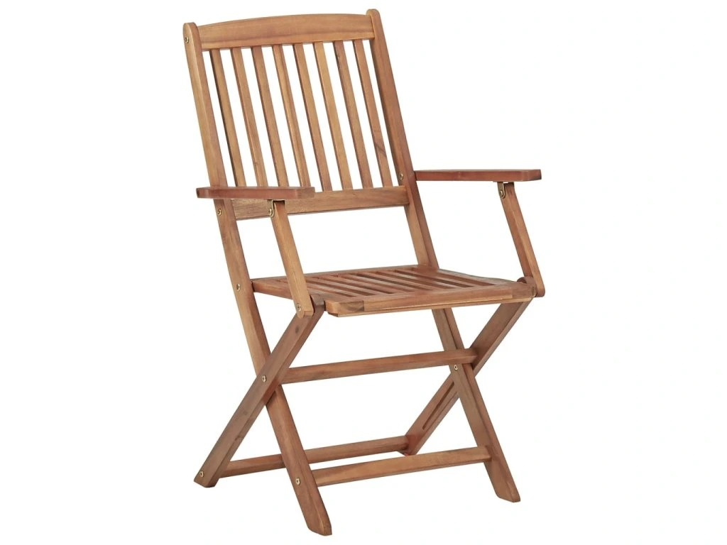 Jídelní židle jsou vyrobené z prémiového akáciového dřeva. Jedná se tropické tvrdé dřevo, které je odolné vůči povětrnostním vlivům a vydrží vám sloužit po mnoho let. Olejem napuštěný povrch se snadno čistí vlhkým hadříkem. Židle můžete složit, aby vám zbytečně nezabíraly místo, když je zrovna nepoužíváte. Pro větší pohodlí obdržíte spolu se židlemi také podušky. Každá z nich je opatřená 2 páry šňůrek, za které je lze pevně přivázat k židli.