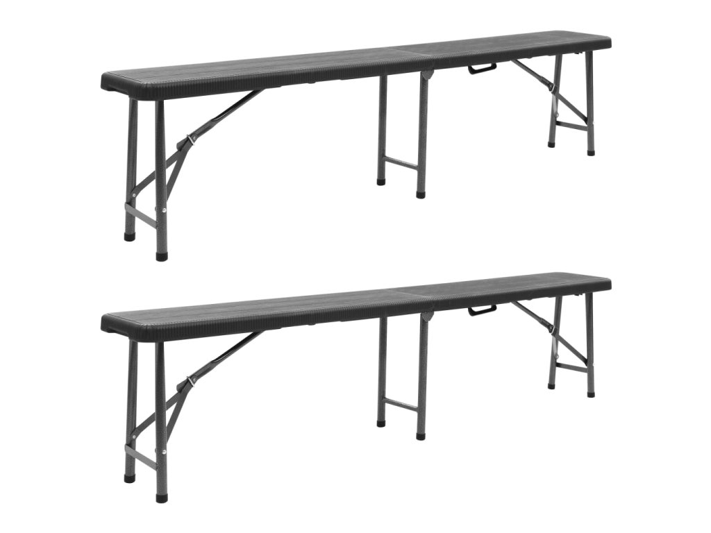 Tento praktický set skládacích lavic se stylovým designem imitace ratanu se výborně hodí na pikniky, party a kempování.