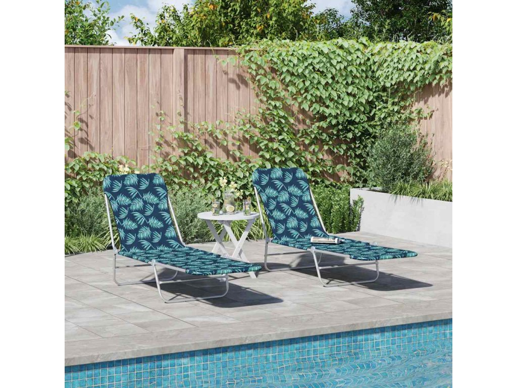 Skládací zahradní lehátka 2 ks ocel a látka potisk listy 310346