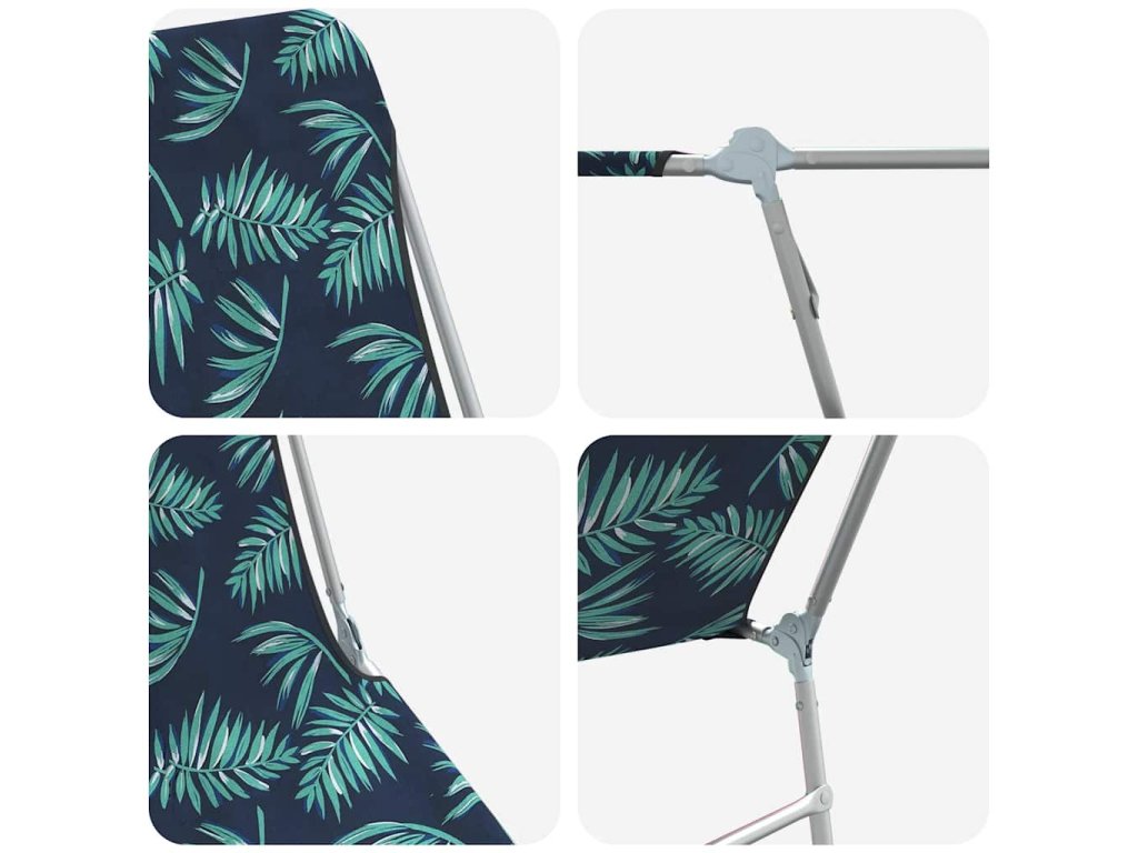 Lehátko disponuje pohodlným nastavitelným opěradlem. Jsou vyrobená z vysoce kvalitní oxfordské látky, a jsou tudíž pohodlná, pevná a nepodléhají povětrnostním vlivům. Rámy z oceli s práškovým nástřikem zajišťují výtečnou stabilitu a odolnost plážových lehátek. Lehátka jsou lehká a lze je jednoduše složit pro skladování a přepravu.