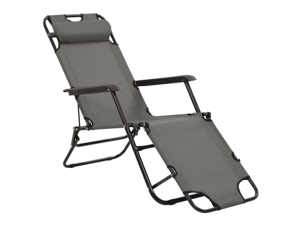 Kempingové židle jsou vyrobené z polyesterové tkaniny potahované PVC. Jsou pohodlné, pevné a odolné vůči povětrnostním vlivům. Rám je vyroben z pevné oceli s práškovým nástřikem. Tyto zahradní židle si můžete nastavit do 2 poloh. Jsou velmi pohodlné při sezení i ležení. Lehátko disponuje nastavitelným opěradlem, opěrkou na nohy a měkkou opěrkou hlavy pro maximální pohodlí.