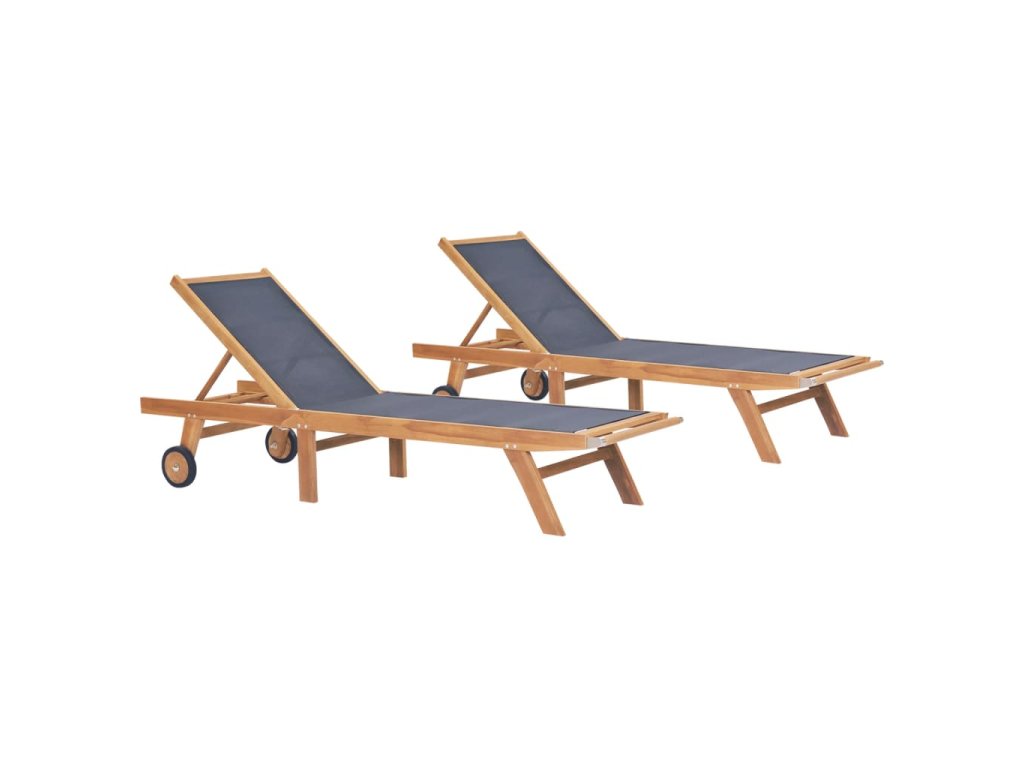Skládací zahradní lehátka s kolečky 2ks masivní teak a textilen 3073000
