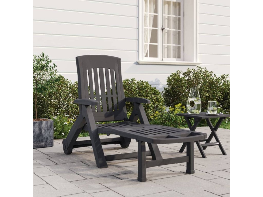 Skládací zahradní lehátko s kolečky antracitové PP 364698