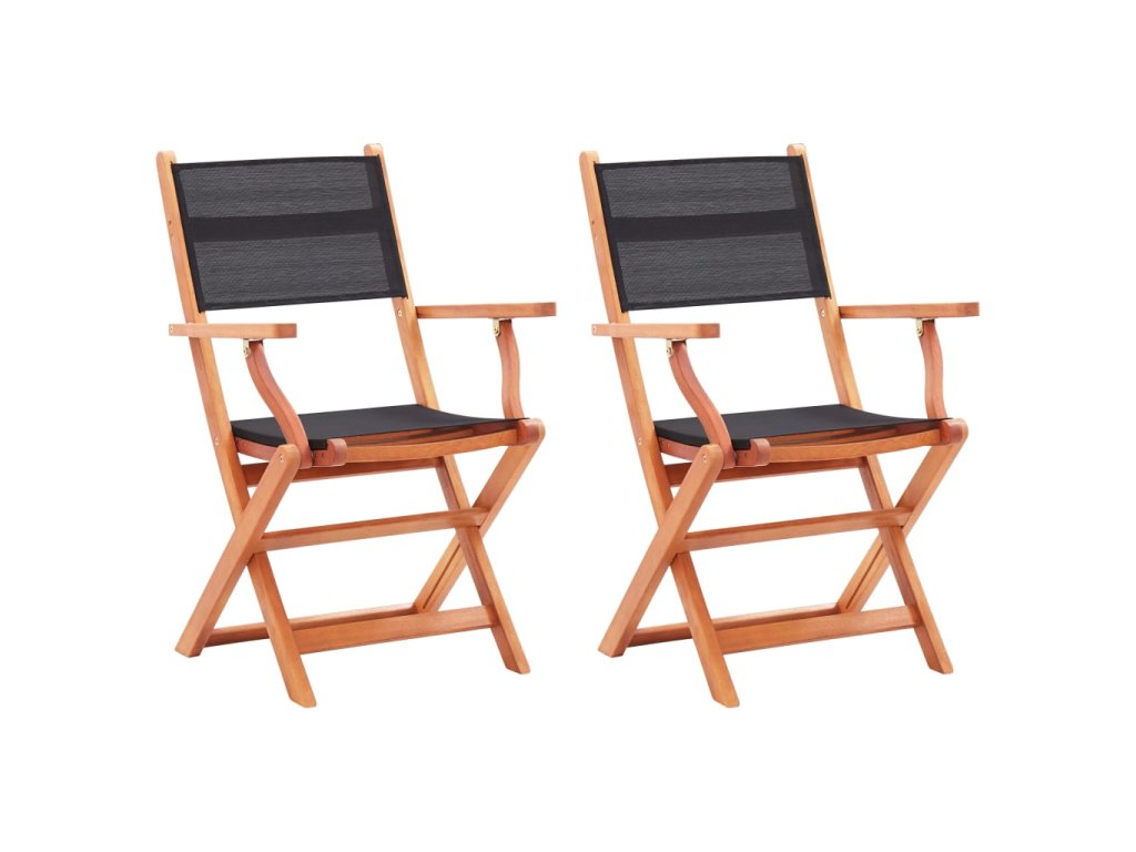Skládací zahradní židle 2 ks černé masivní eukalyptus textilen 48692