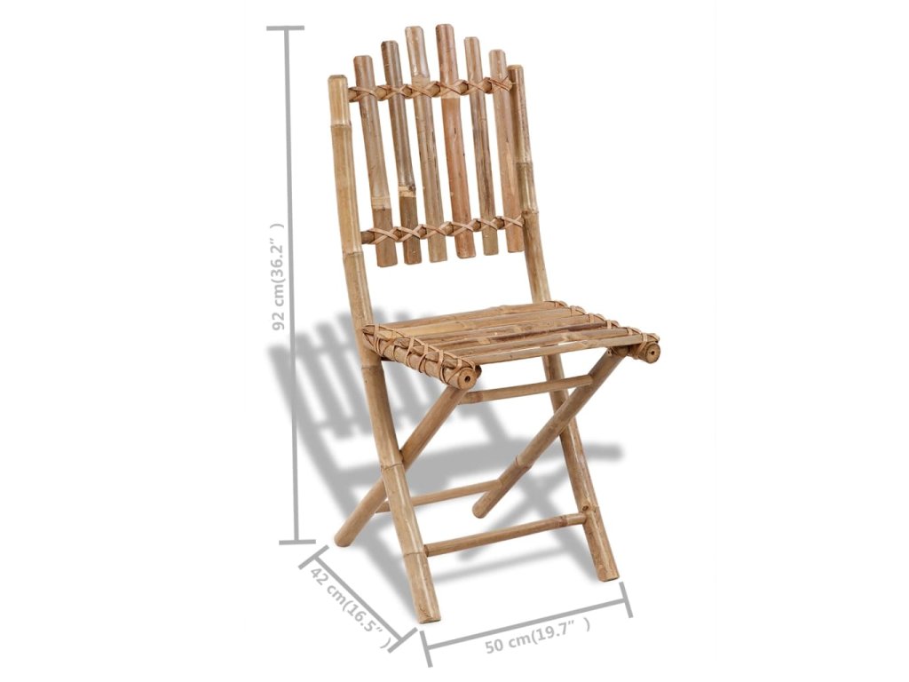 Tento jídelní set, vyrobený z masivního bambusu, je pevný a odolný. Je také rezistentní vůči vodě a povětrnostním vlivům a snadno se čistí vlhkým hadříkem. A pokud židle zrovna nepoužíváte, můžete je složit, a ušetřit tak místo.