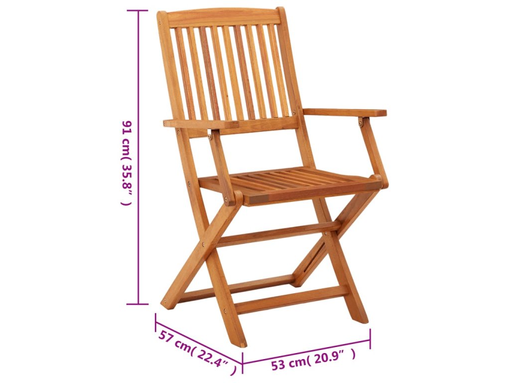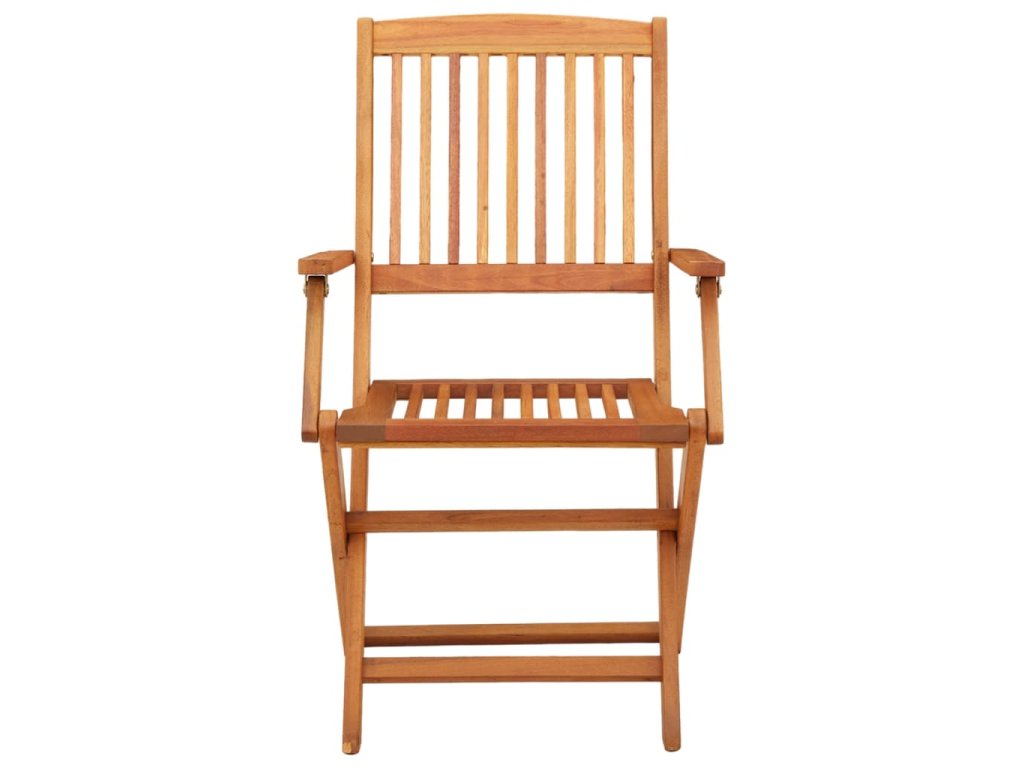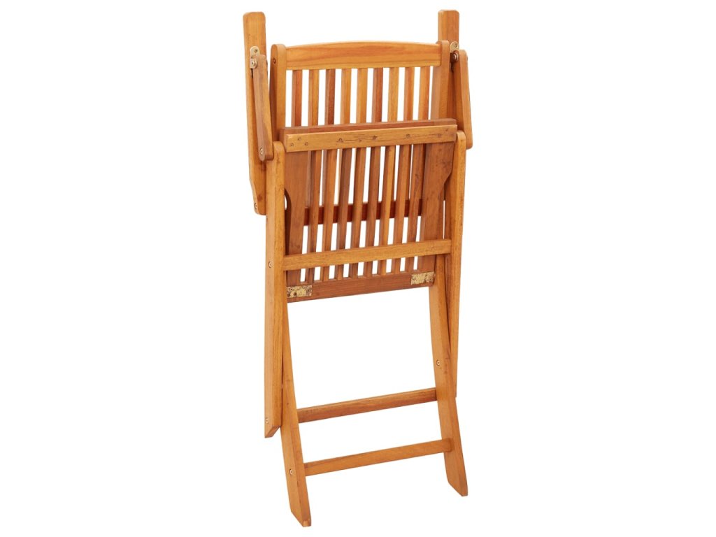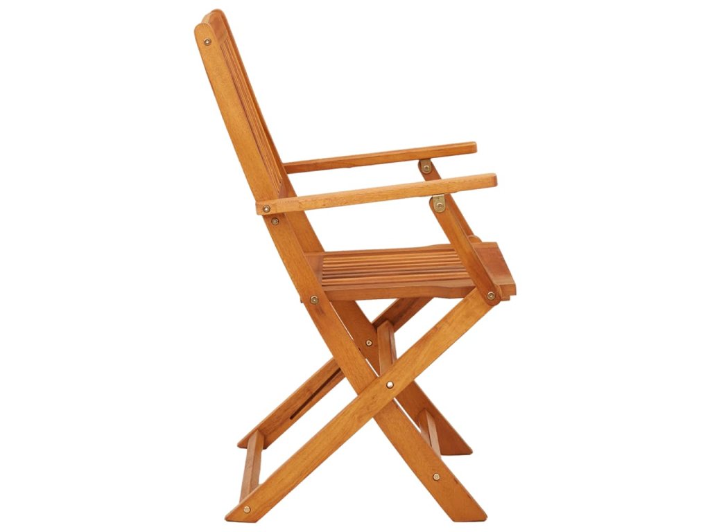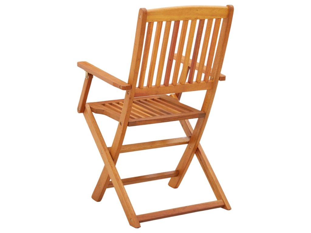 Jídelní židle jsou vyrobeny z eukalyptového dřeva, které je známé svou odolností vůči opotřebení a rozmarům počasí. Olejem ošetřený povrch snadno očistíte vlhkým hadříkem. Pokud židle právě nepoužíváte, můžete je složit, aby vám zbytečně nepřekážely.