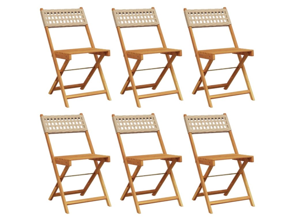 Skládací zahradní židle 6 ks béžové polyratan a masivní dřevo 3214599